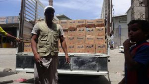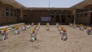 مؤسسة بنيان توزع 500 سلة غذائية للاسر المحتاجة في صرواح بمحافظة مأرب