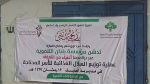 مؤسسة بنيان توزع 500 سلة غذائية بمديرية الصليف في الحديدة