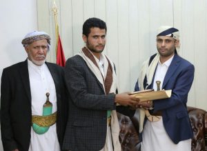 منح رئيس الجمهورية القائد الأعلى للقوات المسلحة مهدي المشاط اليوم وسام الجمهورية للرئيس الشهيد صالح الصماد، سلمه لوالده علي الصماد.