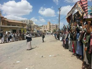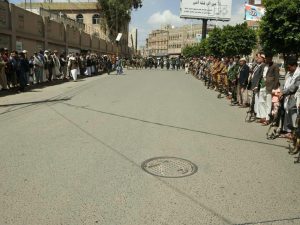 نظمت بأمانة العاصمة اليوم وقفات في مختلف المديريات دعماً للجبهات ورفضاً للتلاعب بالورقة الاقتصادية تحت شعار ” هبة يمانية”.