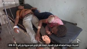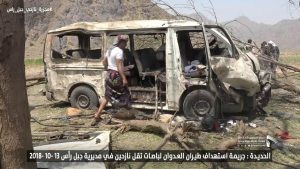 أستشهد 17 نازحا وأصيب 18 آخرون، اليوم ، كحصيلة أولية جراء استهدفت طيران العدوان السعودي الامريكي حافلتين تقل نازحين في محافظة الحديدة.