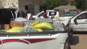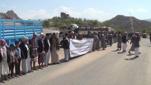 سير أبناء مديريات حزم العدين وفرع العدين ومذيخرة بمحافظة إب قافلة مالية وغذائية ودوائية دعماً للمرابطين في جبهة الساحل الغربي.