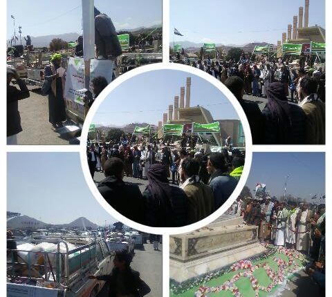وفي فعالية التي انطلقت اليوم من أمام ضريح الرئيس الشهيد صالح الصماد بصنعاء ورفقائه، أوضح البيان الصادر عن الفعالية أن القافلة الغذائية انطلاقاً من تجسيد مبدأ الشراكة واستشعاراً من تنظيم مستقبل العدالة بمسئوليته الوطنية والمجتمعية، في ظل استمرار العدوان الغاشم على بلادنا، وتأكيداً لمواصلة مواجهة العدوان بدعم الجبهات وتحصين الجبهة الداخلية، ومنها الاهتمام بالتكافل الاجتماعي، واستجابة وتنفيذاً لتوجيهات قائد الثورة السيد عبدالملك بن بدر الدين الحوثي .