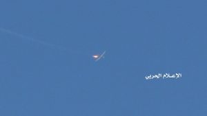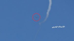 صور من مشاهد لحظة إسقاط طائرة مقاتلة بدون طيار من نوع CH-4 بصاروخ أرض – جو في #صعدة