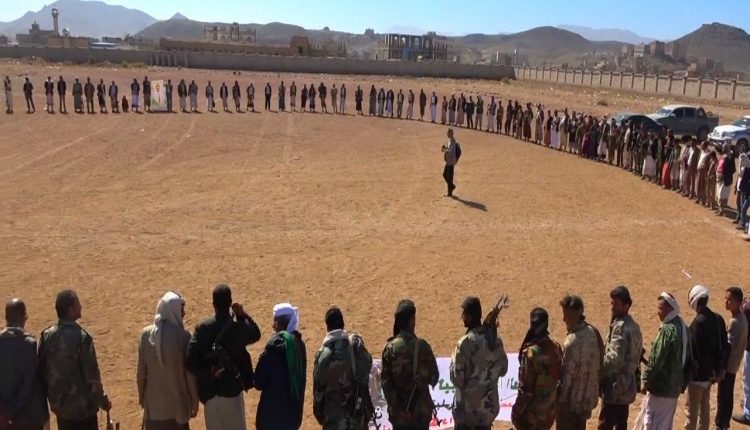 ابناء ومشائخ ووجهاء واعيان مديرية العرش بمحافظة البيضاء نفذوا اليوم وقفة قبلية مسلحة استنكار للجريمة البشعه الذي قامت بها العناصر التكفيرية المسماة داعش واعلان النفير العام ورفد الجبهات بالمال والرجال