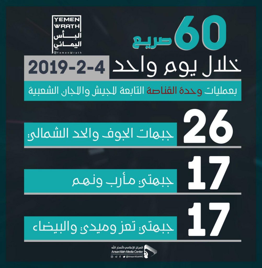 شاهد (انفوجرافيك ) حصاد وحدة القناصة بالجيش واللجان في 24 ساعة On فبراير 7, 2019 شاهد (انفوجرافيك ) حصاد وحدة القناصة بالجيش واللجان في 24 ساعة مشاركة