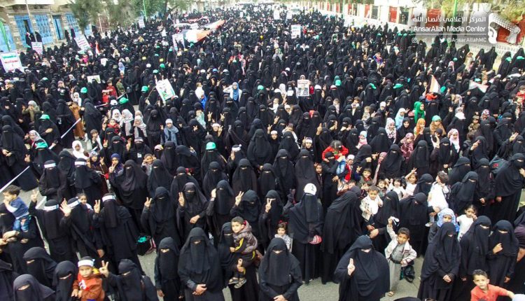 بالصور .. مسيرة نسائية حاشدة بالعاصمة صنعاء تحت شعار”العدوان ينتقم من حجور”