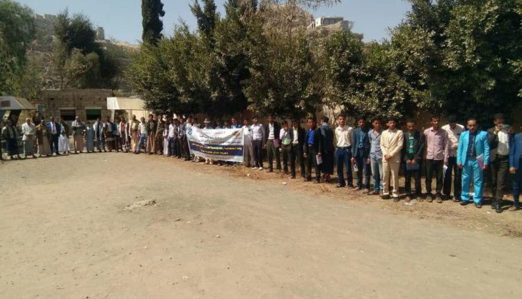 وقفة احتجاجية بجامعة حجة تنديداً واستنكاراً لجرائم العدوان