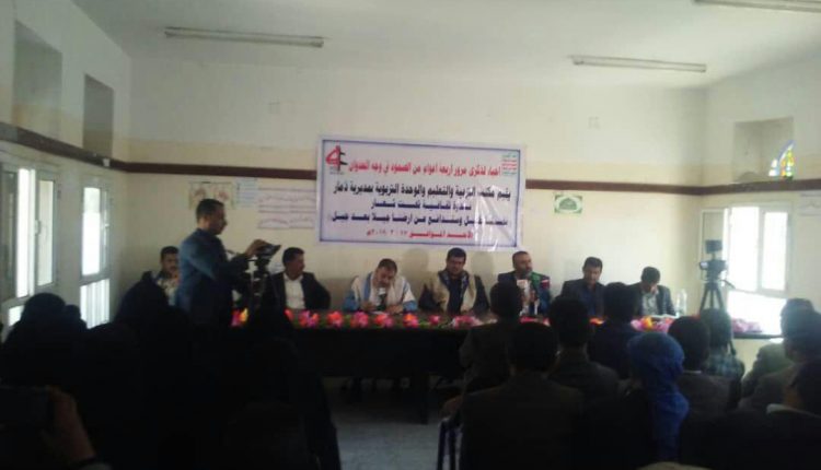 نظم مكتب التربية والتعليم والوحدة التربوية بمديرية ذمار صباح اليوم ندوة ثقافية بمناسبة مرور أربعة أعوام من الصمود في وجه العدوان.