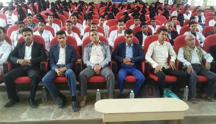 من جانبه اشار مدير عام مكتب الصحة بالمحافظة الدكتور ابراهيم الاشول على ضرورة جديه العمل في مجال الصحة وحث طلاب وطالبات المعهد الصحي على الاجتهد لان اليمن بحاجة لهم خصوصا ونحن ندخل العام الخامس من العدوان الغاشم على بلادنا والذي ندشنه بالصمود والصبر والثبات والجهاد في سبيل الله حتى يتحقق لنا النصر المبين..