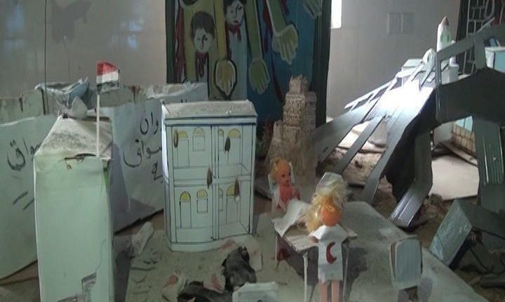 افتتح بمدرسة وادي بناء بمديرية النادرة محافظة إب معرض الرسومات و المجسمات لأبرز جرائم العدوان خلال أربعة أعوام .