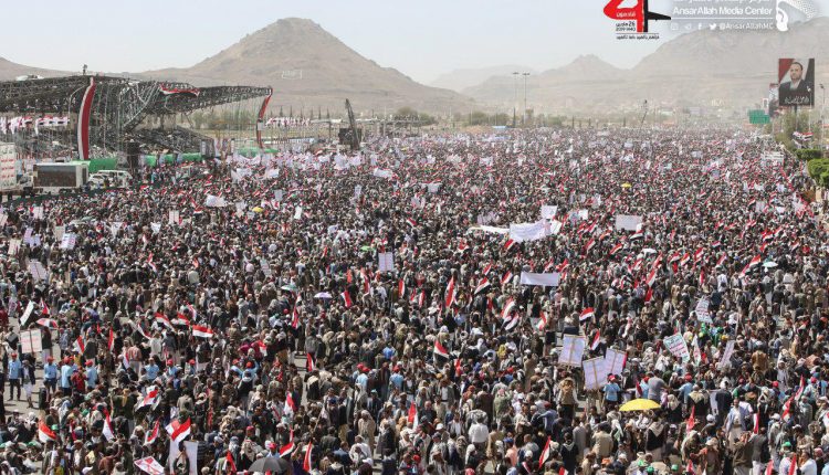 واحتضن ميدان السبعين أكبر ميادين العاصمة صنعاء حشودا مليونية، توافدت من مديريات العاصمة ومحافظة صنعاء وكذلك عدد من المحافظات المحيطة بالعاصمة.