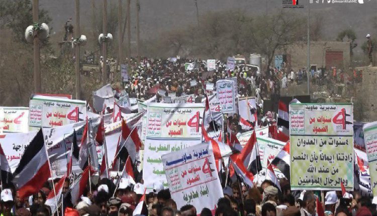 وأشار إلى أن هذا الحشد المهيب يعبر عن قوة وصمود وصلابة الشعب اليمني.. وقال” اليوم ندشن العام الخامس من التحدي والصمود واﻻنتصار بعد مرور أربعة أعوام من العدوان والحصار”.