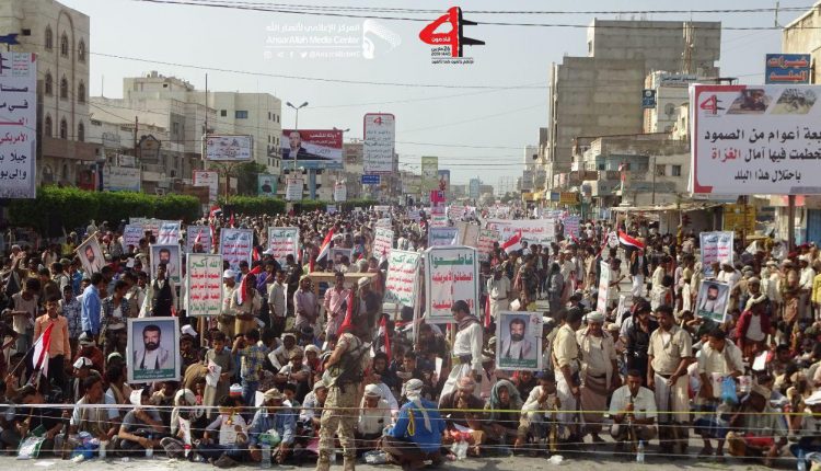 فيما أشاد القائم بأعمال محافظ الحديدة بتفاعل أبناء المحافظة الذين توافدوا إلى الساحة من كل مديرية وعزلة وقرية، لتوجيه رسالة للعدوان بإستمرار صمود اليمنيين في مواجهته.