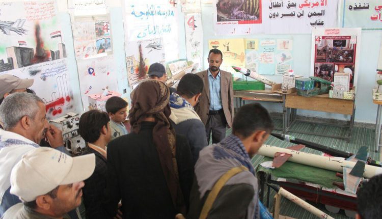 ذمار.. معرض فني وتشكيلي لمجسمات جرائم العدوان والتصنيع العسكري بمدرسة عثمان