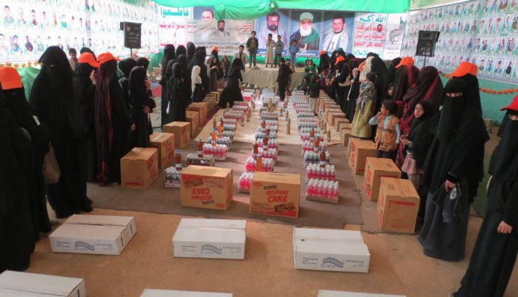 وخلال تسيير القافلة التي تضمنت مواد غذائية وتبرعات مالية نقدية وعينية وأغنام نظمت حرائر المدينة فعالية ثقافية إحياء للذكری السنوية للشهيد القائد حسين بدر الدين الحوثي.