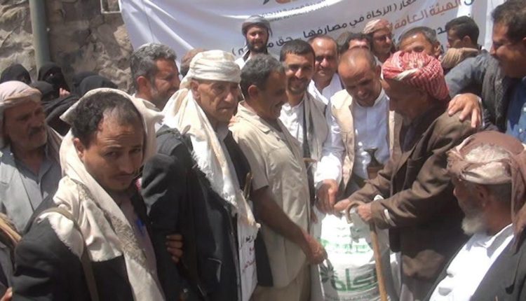 إب ..هيئة الزكاة توزع ٨٠٠ كيس من الحبوب على الفقراء والمحتاجين في مديرية يريم