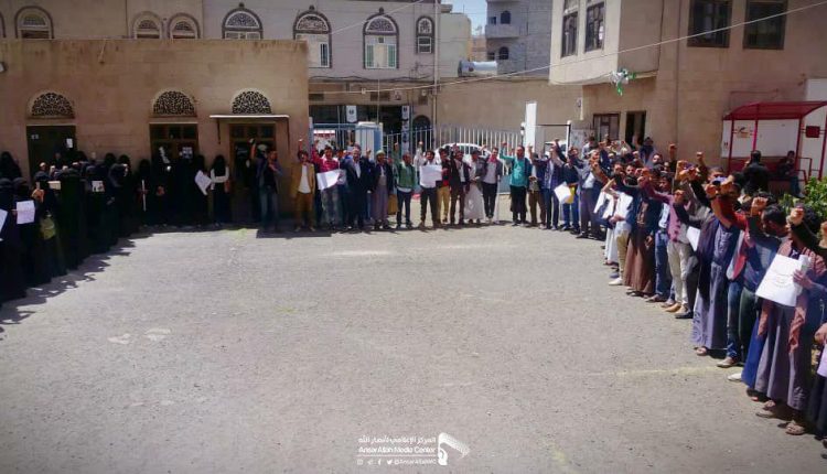 وفي الوقفة ألقيت العديد من الكلمات المنددة بجرائم العدوان وصمت المجتمع الدولي والمنظمات وانحيازها مع قوى العدوان رغم الانتهاكات المتواصلة وتفاقم الوضع الانساني جراء العدوان والحصار بحق الشعب اليمني