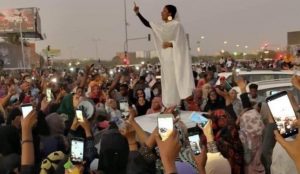 متظاهرة سودانية تلهب الحماس على شبكات التواصل