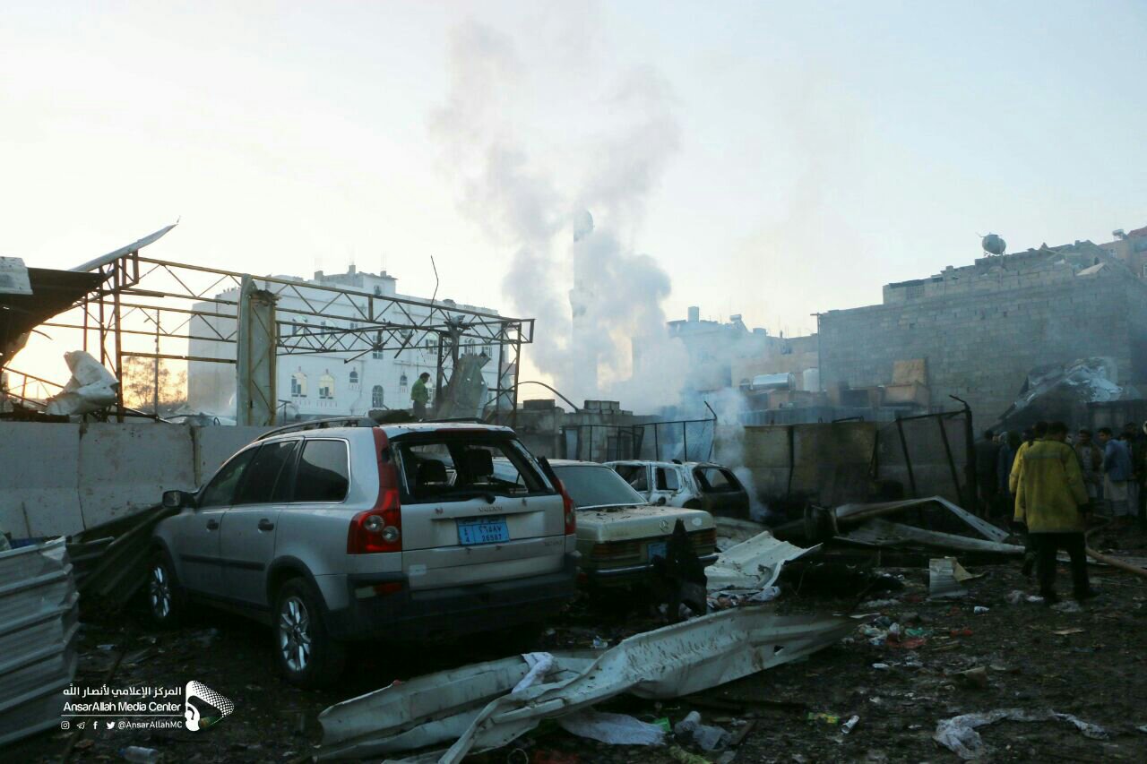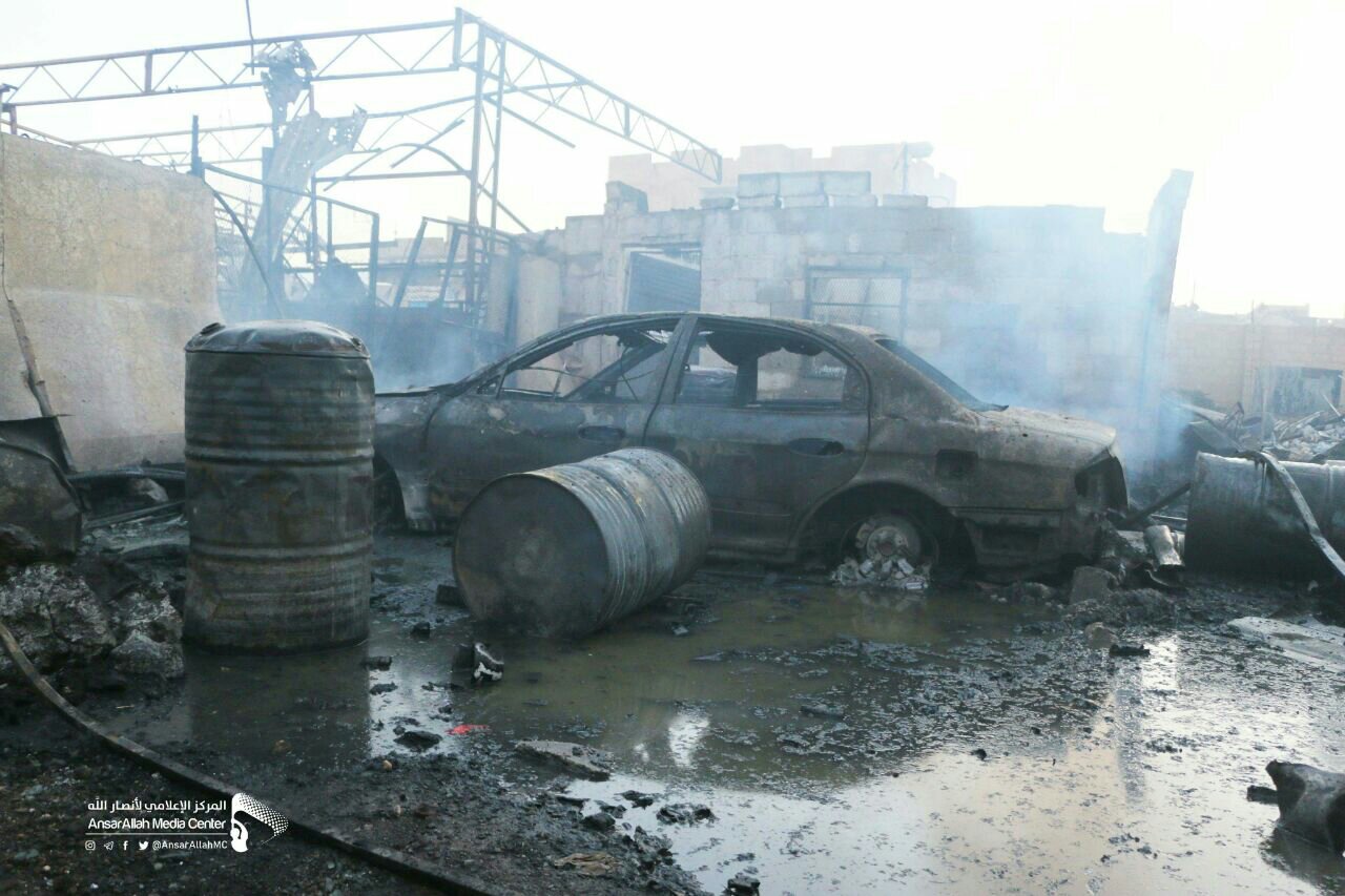 الى ذلك شن طيران العدوان غارة على منزل المواطن يحيى القديمي قرب القناة التعليمية بمديرية الثورة واصابة عدد من المواطنين ودمار كبير في المنزل وتضرر المنازل المجاورة.