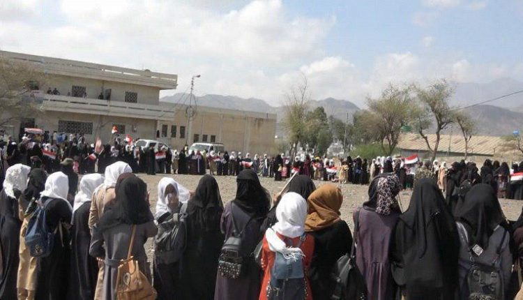 اقامت الهيئة النسائية بمديرية التعزية في محافظة تعز صباح اليوم الاثنين وقفة نسائية حاشدة تنديدا بجريمة العدوان بحق طالبات منطقة سعوان بالعاصمه صنعاء