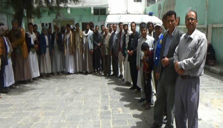 وقفة احتجاجية بمستشفى عمران العام للتنديد بجرائم العدوان