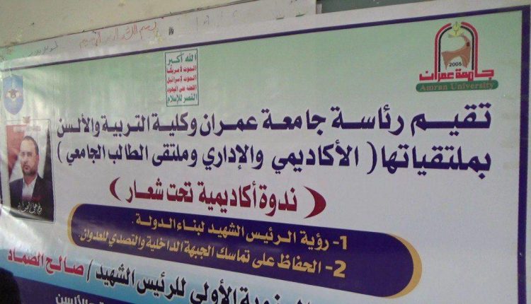 نظمت جامعة عمران وكلية التربية والألسن وملتقياتها الأكاديمي والإداري وملتقى الطالب الجامعي ندوة بمناسبة ذكرى استشهاد الرئيس صالح الصماد.