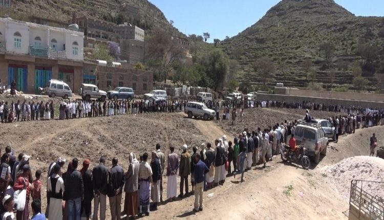 إب .. وقفة احتجاجية في الشعر تنديداً للجريمة البشعة التي ارتكبها العدوان في العود