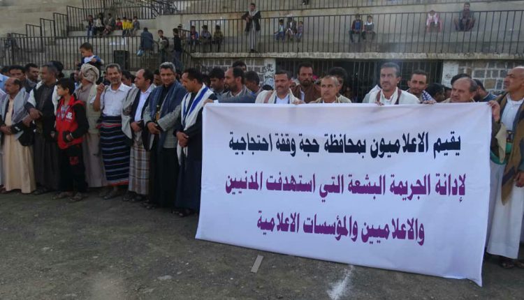 كما ادان اعلاميوا محافظة حجة تعمد العدوان للاستهداف المتكرر للمؤسسات الاعلامية ورموزها كما حدث مؤخرا باستهداف مبنى وزارة الاعلام ومنزل رئيس اتحاد الاعلاميين اليمنيين عبدالله صبري.