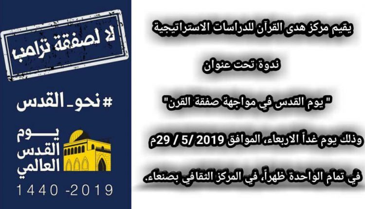 صنعاء| “يوم القدس في مواجهة صفقة القرن” في ندوة موسعة ظهر غد الأربعاء