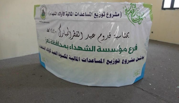 تعز | توزيع مبالغ نقدية خاصة بكسوة العيد لأبناء الشهداء