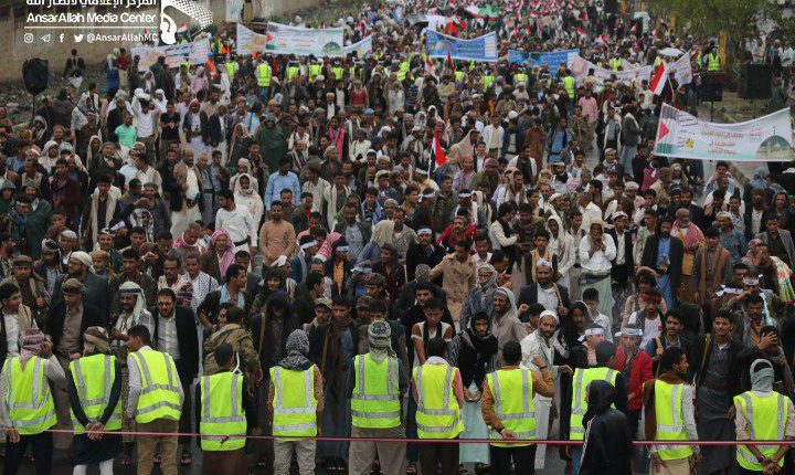 وأكدت الحشود المشاركة في المسيرة أن ثبات موقف الشعب اليمني إزاء القضية الفلسطينية باعتبارها القضية المركزية للأمة ورفضه لصفقة القرن لتصفيتها.