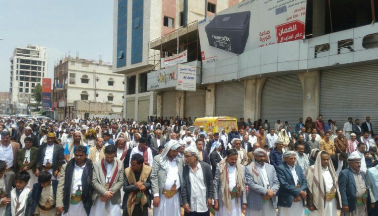 حيث أدى المعتصمون وبحضور المدير العام التنفيذي لشركة النفط اليمنية ياسر الواحدي وعدد من قيادات الشركة ومدراء ونواب وموظفي الفروع والدوائر بالشركة وجموع من المواطنين وممثلي منظمات المجتمع المدني صلاة الجمعة في شارع الستين الجنوبي أمام المكتب الأممي .