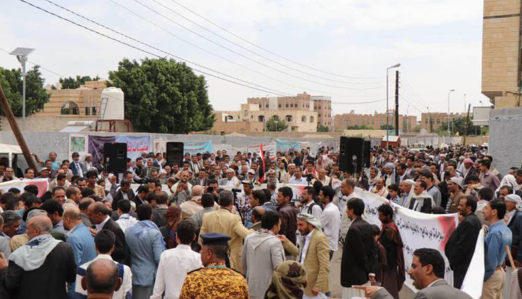 صنعاء | وقفة احتجاجية تنديداً بالصمت الأممي إزاء احتجاز التحالف لسفن نفطية