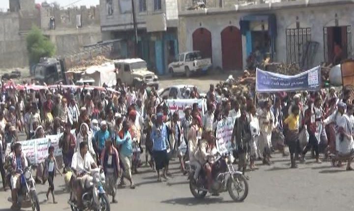 وفي الوقفة التي حضرها مشرفي المحافظة والمديريات وممثلي السلطة المحلية و شخصيات رسمية و أمنية و عدد من المشايخ و الأعيان وجمع غفير من المواطنين ،اعلن الحاضرون النفير العام كما حمل المشاركون تحالف العدوان بقيادة مملكة