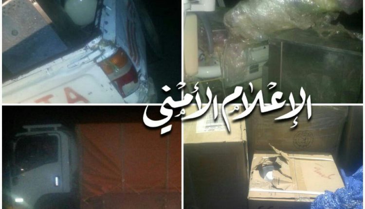 وفي نفس المديرية ضبط رجال الأمن في نقطة قحازة تم ضبطت شاحنة دينا تحمل على متنها عدد ٢١٠ كراتين من الأدوية المهربةكانت متجهة إلى العاصمة ، وهذه الادوية المهربة تتبع مؤسسة الزاهر .