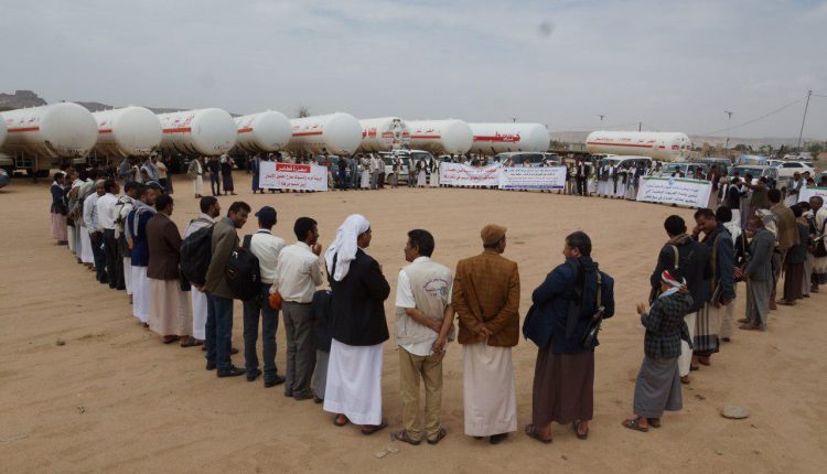 بيان وقفة الهيئة الوطنية لتنسيق الشؤون الانسانية ومؤسسات المجتمع المدني بصعدة التي نظمت امام مقر الامم المتحدة