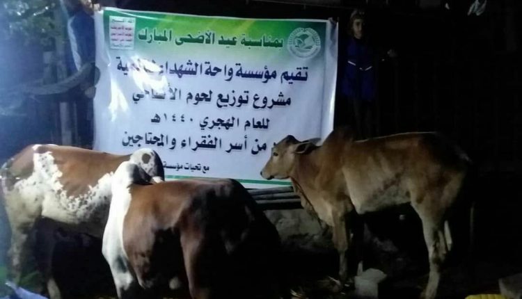 واحة الشهداء توزع لحوم أضاحي العيد للفقراء والمحتاجين بمحافظة صنعاء