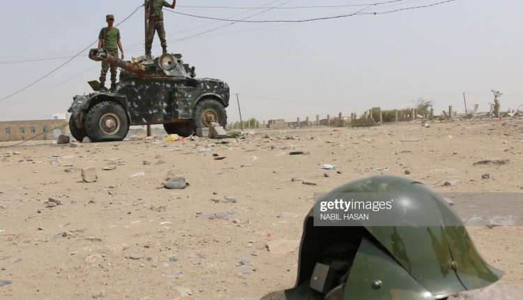 Fighters with the UAE-trained Security Belt Forces loyal to the pro-independence Southern Transitional Council (STC), stand atop a military vehicle near the south-central coastal city of Zinjibar in south-central Yemen, in the Abyan Governorate, on August 21, 2019. - Yemeni separatists drove government troops out of two military camps in deadly clashes yesterday, reinforcing their presence in the south after they seized the de facto capital Aden. (Photo by Nabil HASAN / AFP) (Photo credit should read NABIL HASAN/AFP/Getty Images)