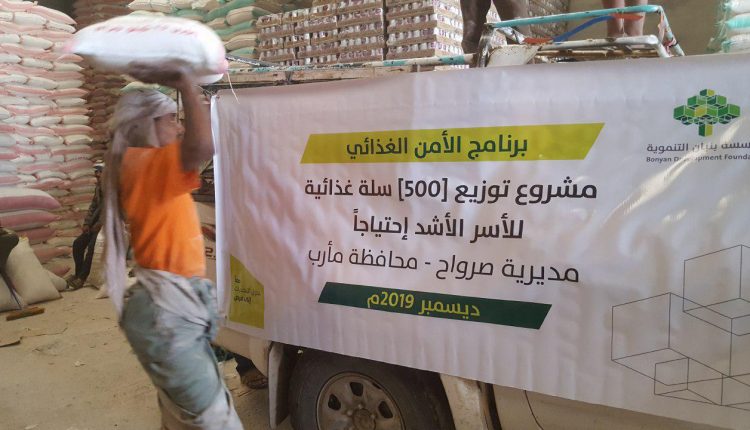 مأرب : بنيان توزع 500 سلة غذائية للأسر الأشد إحتياجا بصرواح