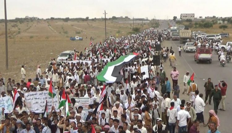 مسيرتان جماهيريتان بالمربع الجنوبي في الحديدة رفضاً لـ”صفقة ترامب” المشؤومة