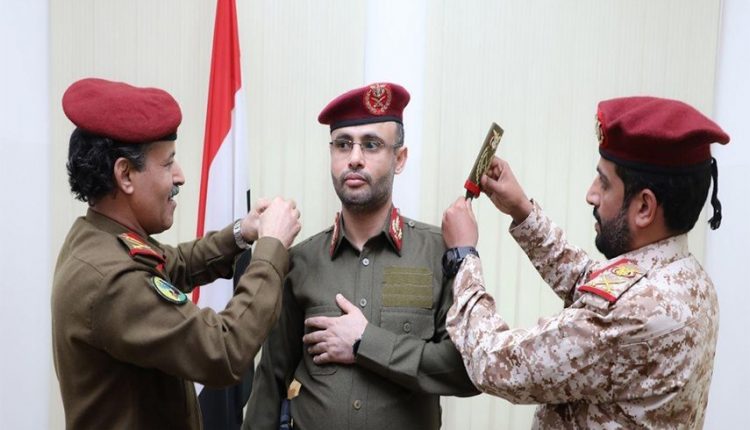 قام بتسليم الرئيس المشاط شهادة الماجستير الفخرية، وزير الدفاع اللواء الركن محمد ناصر العاطفي ورئيس هيئة الأركان العامة اللواء الركن محمد عبدالكريم الغماري وتقليده رتبة المشير الركن.