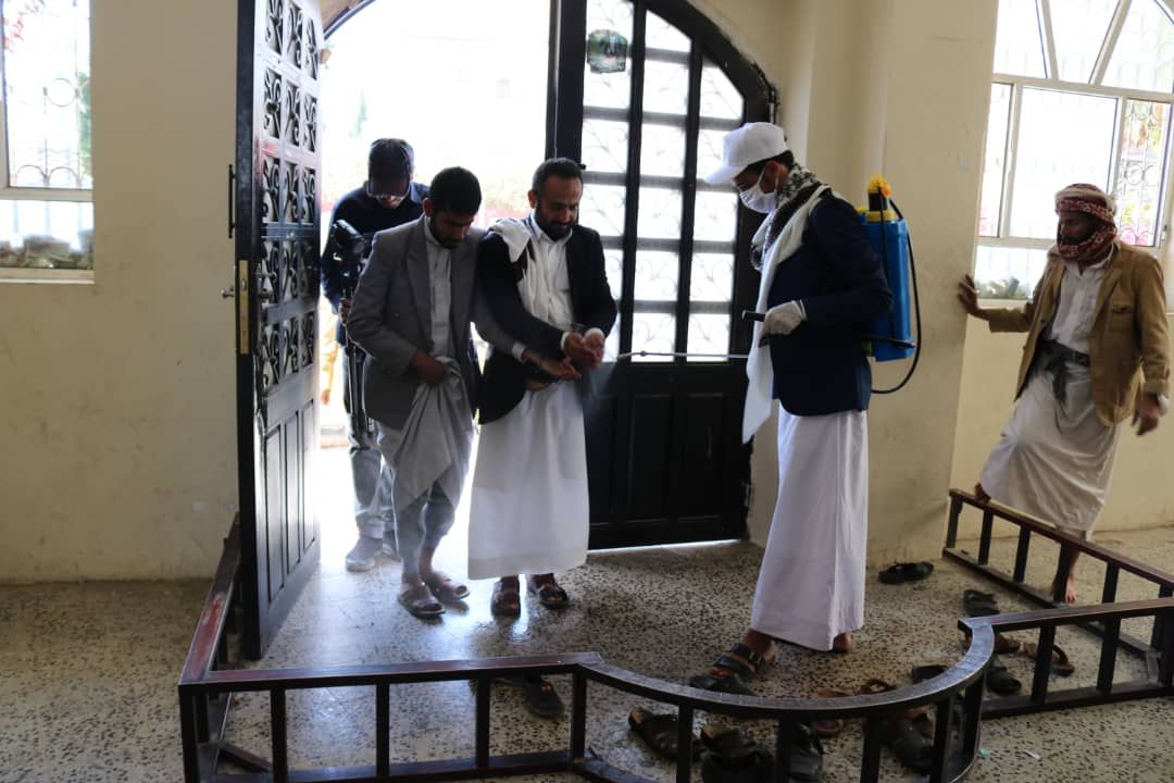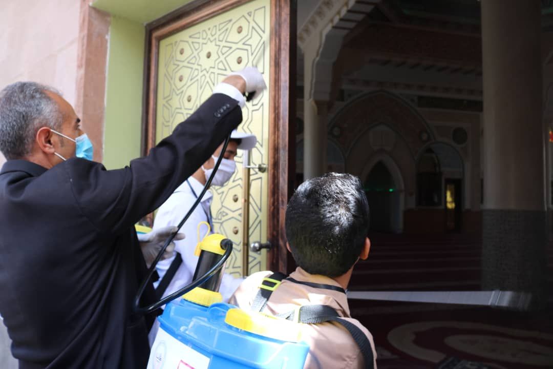 الصمود/تفقد مدير المساجد بوزارة الأوقاف والإرشاد محمد الفقيه اليوم، أعمال النظافة والتعقيم بالجامع الكبير بصنعاء وعدد من المساجد بمديرية الوحدة.وأشرف مدير المساجد بالوزارة ومعه نائب مدير مكتب الأوقاف بالأمانة عدنان المضواحي، خلال زيارتهما للجامع الكبير بصنعاء ومساجد البليلي والنور والفنية، على مستوى النظافة والتعقيم، ضمن الحملة التي تنفذها وزارة الأوقاف بالتنسيق مع مكتبها بالأمانة.وأوضح الفقية أن حملة نظافة وتعقيم المساجد بأمانة العاصمة تأتي ضمن التدابير الإحترازية والاستباقية التي تتخذها الوزارة ومكتبها لمواجهة فيروس كورونا.وحث فرق الحملة على استمرار أعمال النظافة والتعقيم للمساجد، بما يكفل حماية المصلين من الأمراض والأوبئة .. مؤكدا أن الحملة تأتي في سياق الاهتمام ببيوت الله والحفاظ على نظافتها وتعقيمها.فيما دعا نائب مدير مكتب الأوقاف بالأمانة المضواحي القائمين وسدنة المساجد إلى الاهتمام بالمساجد والعمل على نظافتها وتعقيمها باستمرار.وأشار إلى أهمية الحملة، لنظافة وتعقيم المساجد والاهتمام بنظافتها انطلاقاً من مبادئ وقيم الدين الإسلامي الحنيف الذي حث على النظافة لوقاية المجتمع وسلامته من الأمراض.مشرف فريق الرش بالجامع الكبير نائب مدير الصيانة بمكتب أوقاف الأمانة عبدالسلام المهدي، أوضح بدوره أن فرق الحملة تقوم يومياً برش المرافق العامة والأسطح والصوح وأجنحة الجامع الكبير بصنعاء.